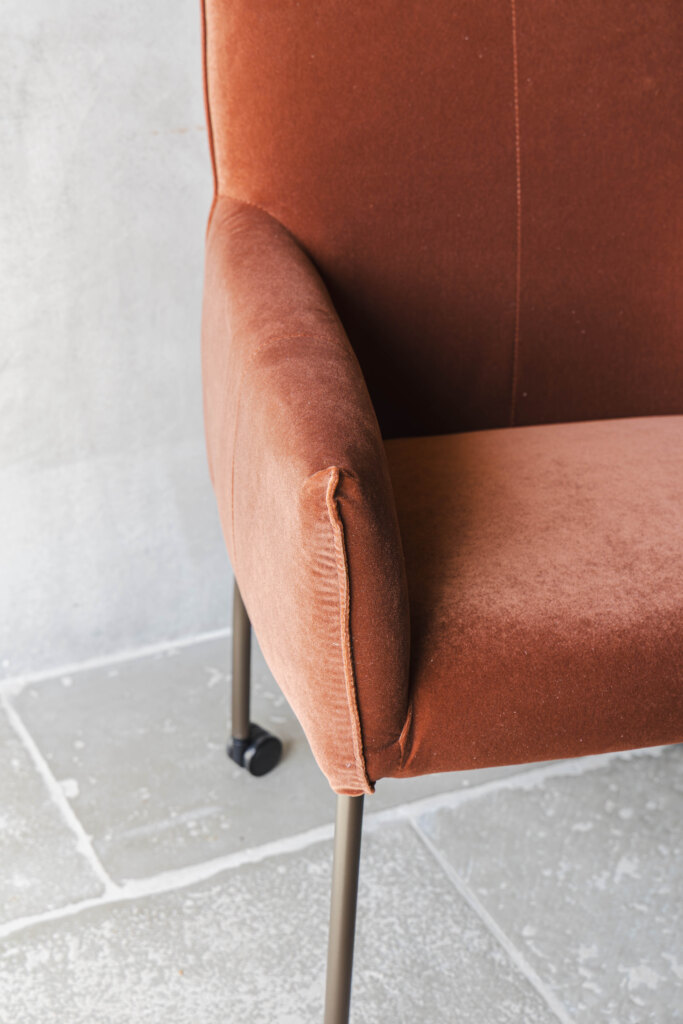 De eetkamerstoel Mick is een stijlvolle en comfortabele toevoeging aan iedere eethoek. Deze grote variant met armleuningen en wielen biedt extra zitcomfort en een luxe uitstraling, ideaal voor lange avonden aan tafel. Dankzij het tijdloze design past Mick moeiteloos in diverse interieurstijlen.