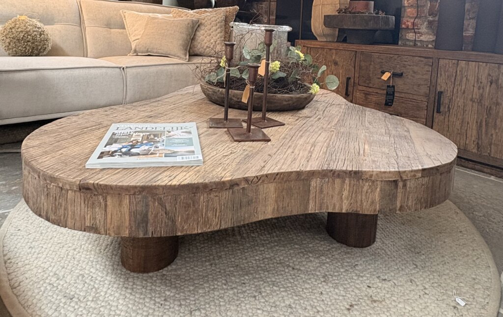 Salontafel Austin is een echte blikvanger in je interieur. Met zijn organische, royale vorm en robuuste uitstraling brengt deze tafel direct warmte en karakter in de ruimte. Het stoere hout geeft elke tafel een unieke uitstraling, met zichtbare nerven en natuurlijke kleurnuances. Perfect voor wie houdt van een eigentijdse, maar toch natuurlijke woonstijl.